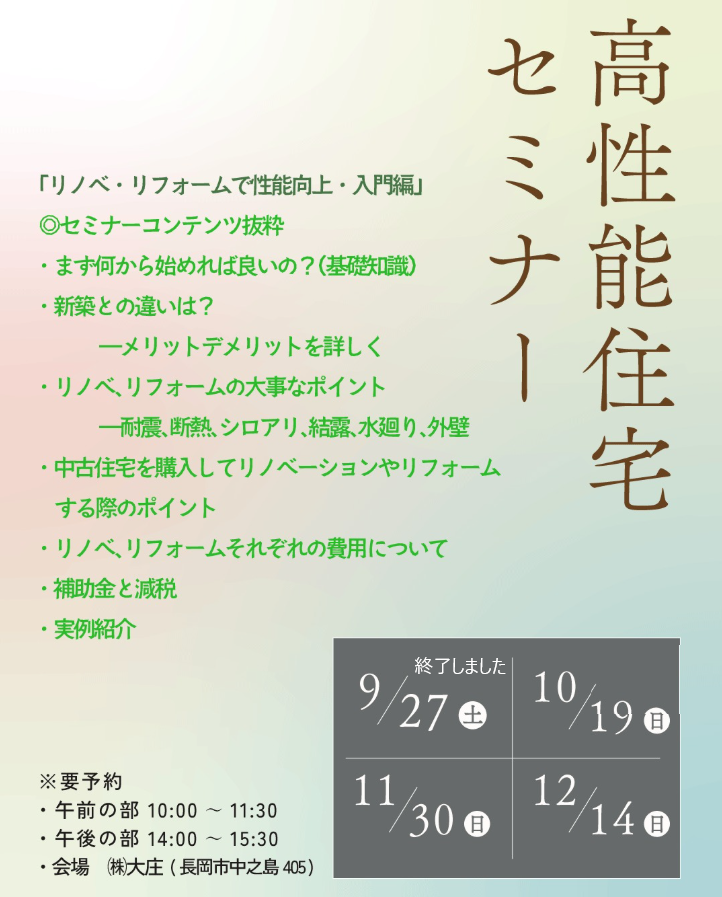 イベント情報 10/19(sun) 高性能住宅セミナー