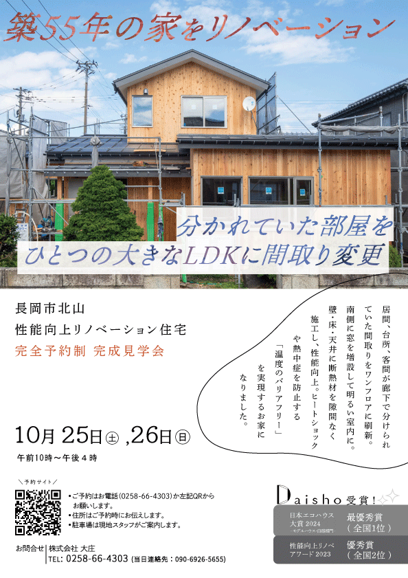 ・耐震・断熱改修で安心快適>>築55年の住まいを耐震改修し、断熱材も新設。夏涼しく、冬あたたかく。温度差も少なく、ヒートショック対策にも効果的!